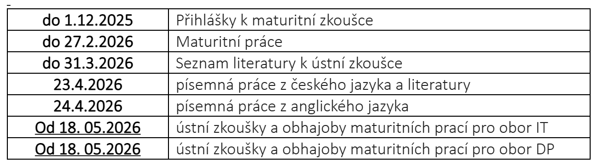 TERMÍNY MATURITNÍCH ZKOUŠEK